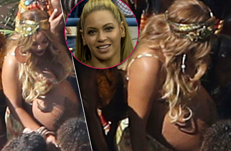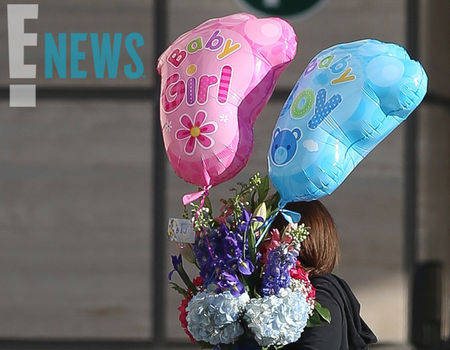 Well, well, well, what do we have here? As speculation that Beyoncé give birth to her and Jay Z's twins grows, an unidentified woman was photographed Friday at a Los Angeles hospital, carrying a bouquet of pink, purple and blue flowers with two giant baby foot-shaped pink and blue balloons that read, "Baby Girl" and "Baby Boy."