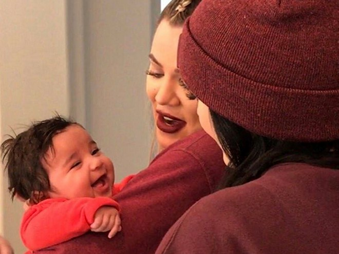 Dream Kardashian 'ssmile will make you smile. The 2-month-old looked adorable in aunt Khloé Kardashian 's latest social media post on Tuesday, when the infant visited grandmother Kris Jenner 's house with dad Rob Kardashian . In the photo, Dream gave the cutest grin as aunts Kylie Jenner and Khloé looked lovingly back at their niece.
